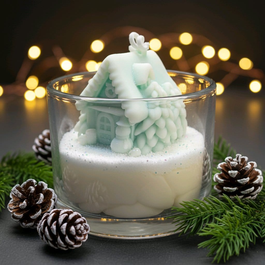 Enchanted Snow Cabin ist ein handgefertigtes Kunstwerk, das die Magie eines verschneiten Märchendorfes in einer Kerze einfängt. Das detailverliebte Schneehäuschen aus Wachs scheint sanft im Schnee eingebettet zu sein und lässt jede Umgebung sofort winterlich, gemütlich und zauberhaft wirken.