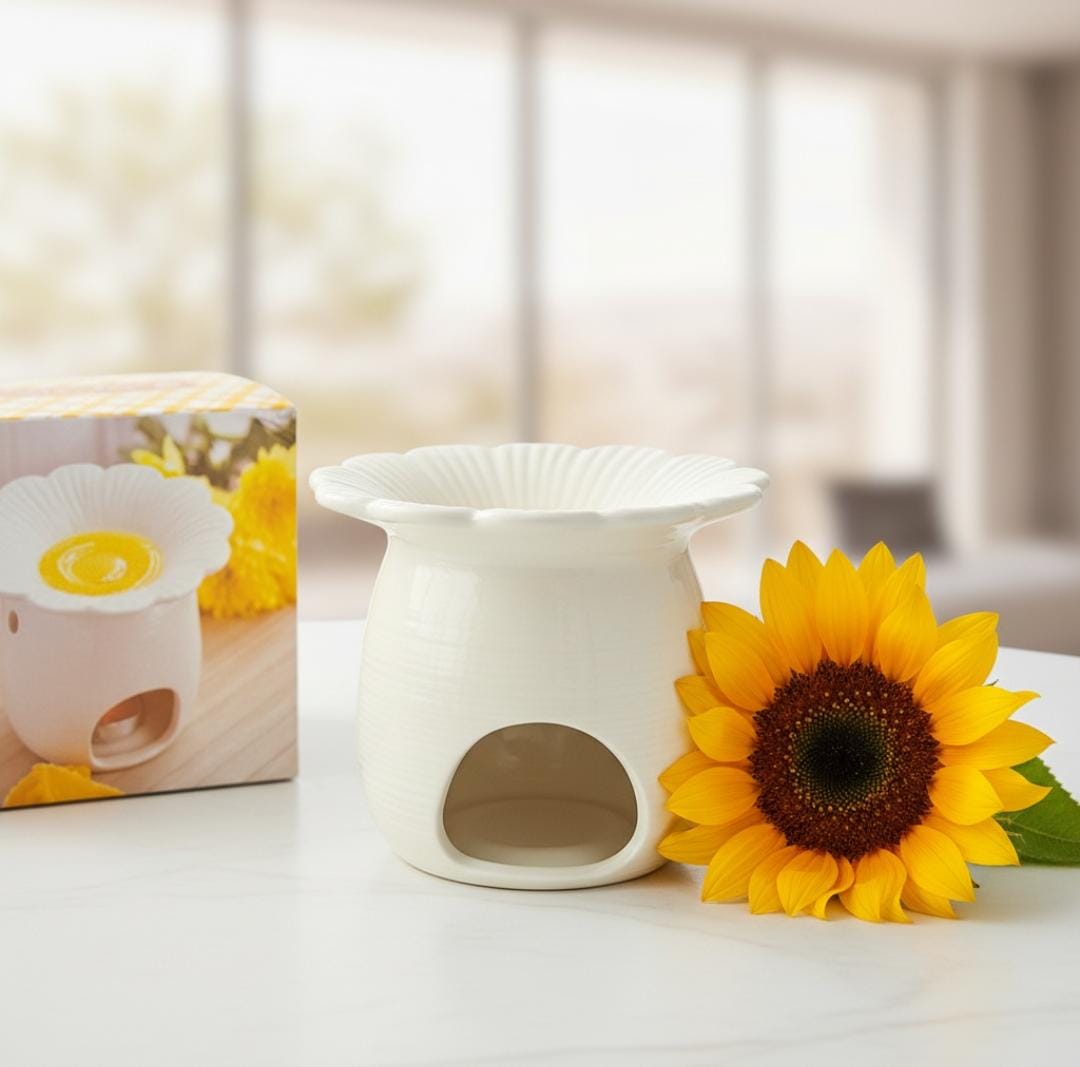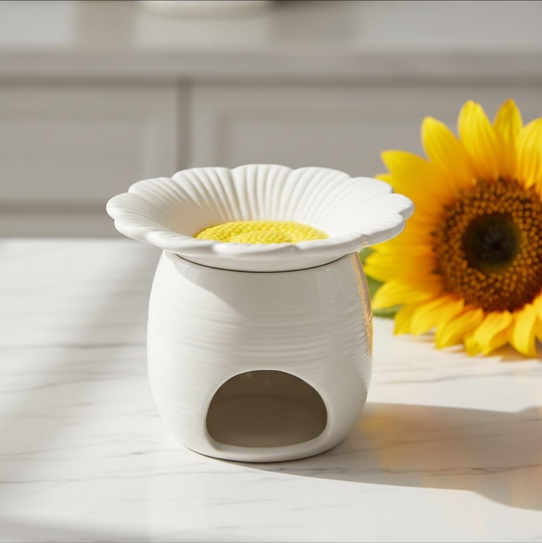 Manchmal braucht es nicht viel, um einem Raum Ruhe und Wärme zu schenken. Diese Duftlampe in zarter Margeritenform lebt von ihrer schlichten Eleganz und der sanften Ausstrahlung, die sie ganz automatisch verbreitet. Die helle Keramik, kombiniert mit dem fein gearbeiteten Blütenrand, wirkt ruhig & natürlich perfekt für alle, die es unaufgeregt und harmonisch mögen.