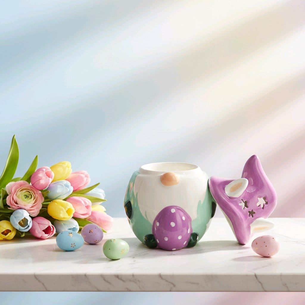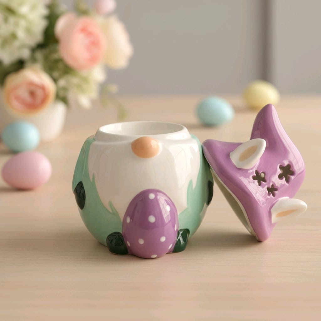 Diese liebevoll gestaltete Keramik Duftlampe im niedlichen Osterwichtel Design bringt sofort fröhliche Frühlingsstimmung in dein Zuhause. Mit seinem runden Körper, der kleinen Nase und der verspielten Mütze in zarten Pastellfarben wirkt der Wichtel warm, gemütlich und gleichzeitig dekorativ perfekt für die Osterzeit und darüber hinaus.