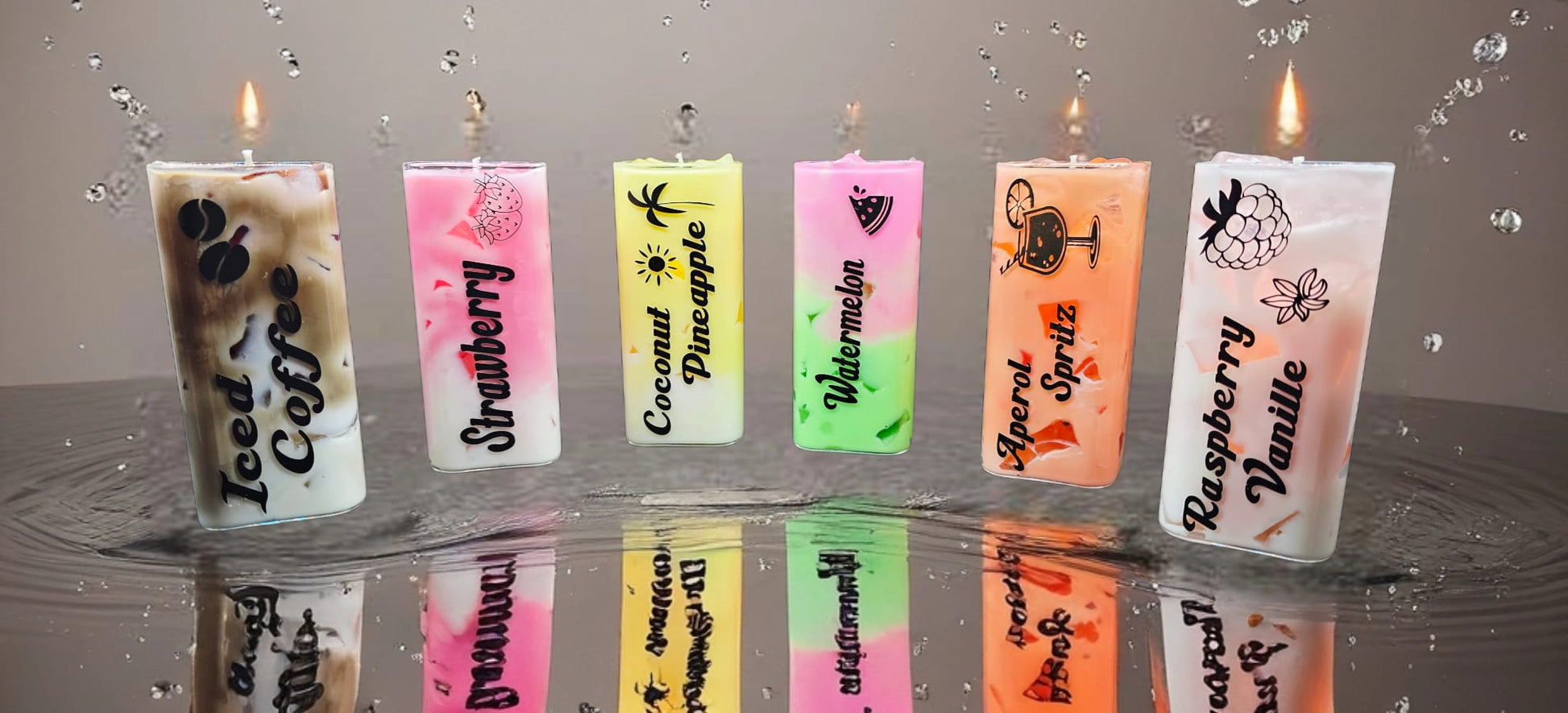 Erlebe den Sommer in seiner schönsten Form – mit unseren handgegossenen Duftkerzen im erfrischenden Getränkedesign! Jede Kerze sieht aus wie ein cooler Sommerdrink und verführt mit einem einzigartigen Duft, der deine Sinne umhüllt und für echte Wohlfühlmomente sorgt.