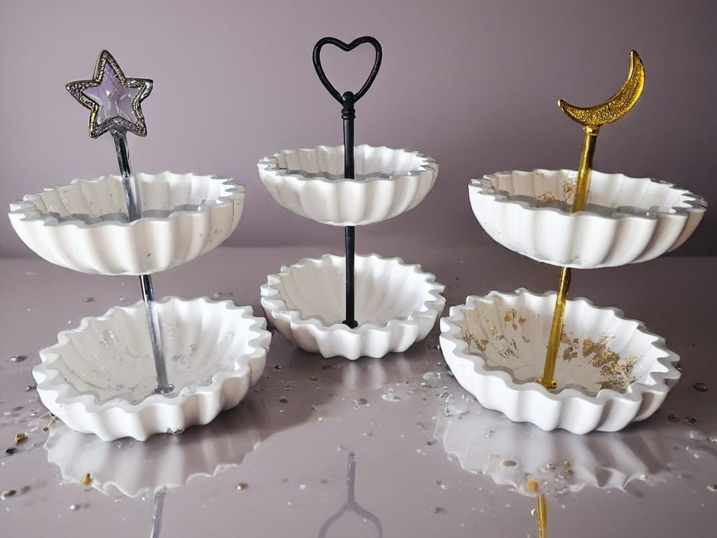 Diese stilvolle, handgefertigte Etagere bringt Eleganz und Individualität in Ihr Zuhause. Ob für Schmuck, Süßigkeiten, Kosmetik oder kleine Dekoartikel – sie ist ein dekoratives Highlight und gleichzeitig funktional.