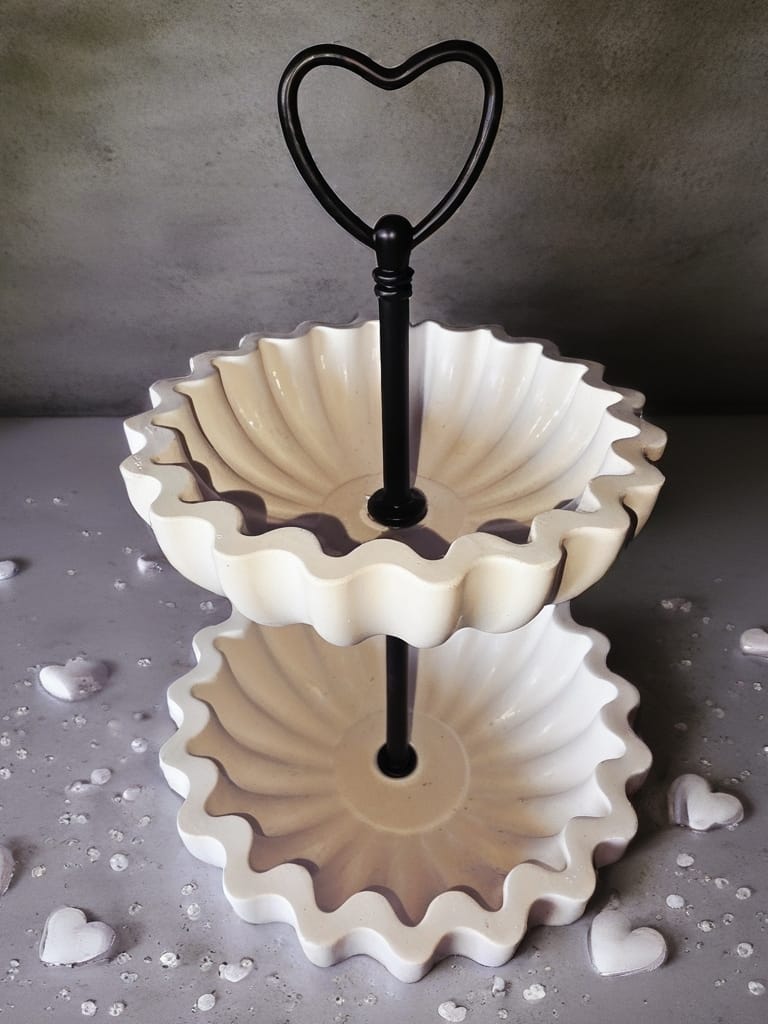 Handgefertigte Etagere – 2-stöckig mit einzigartigen Designgriffen