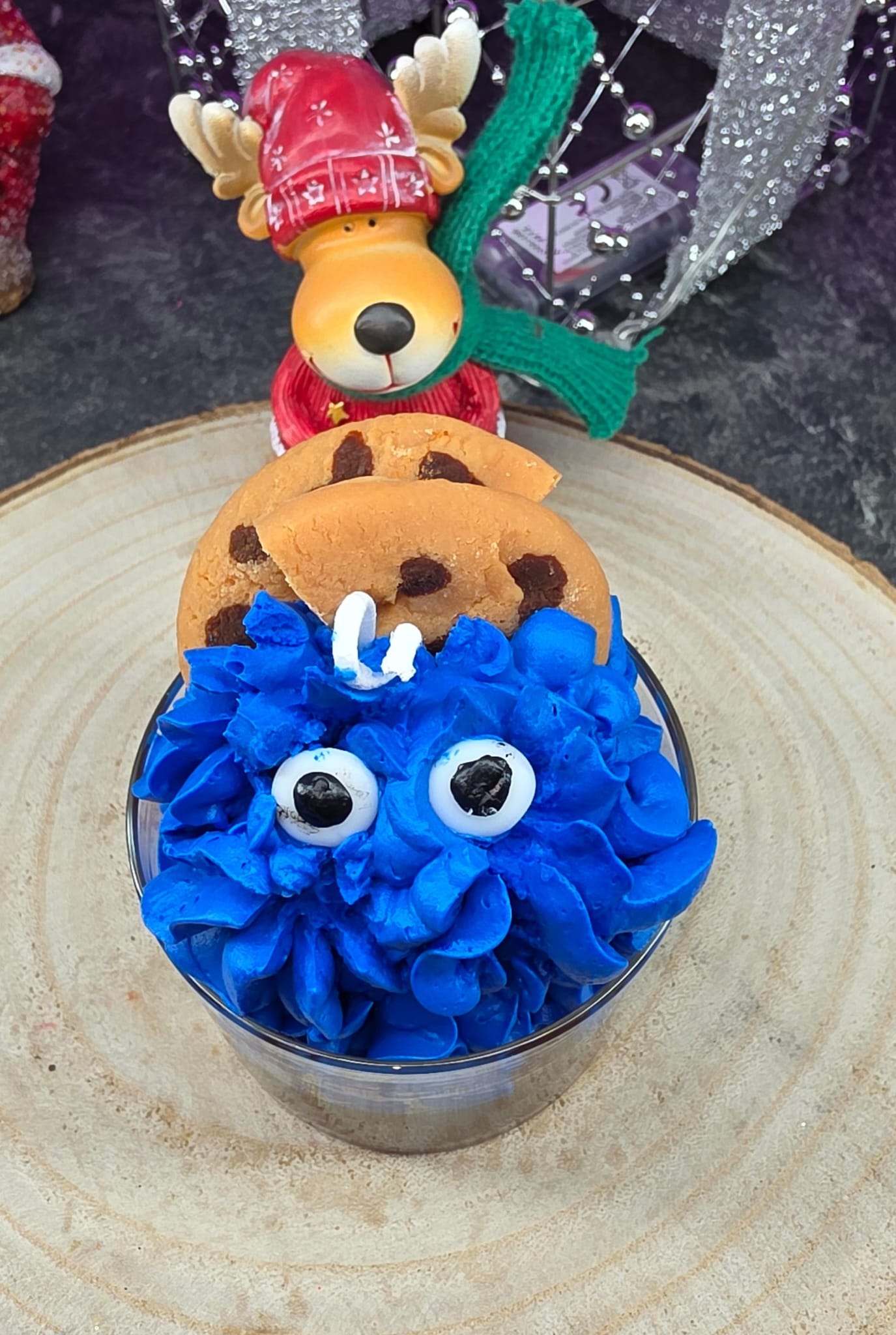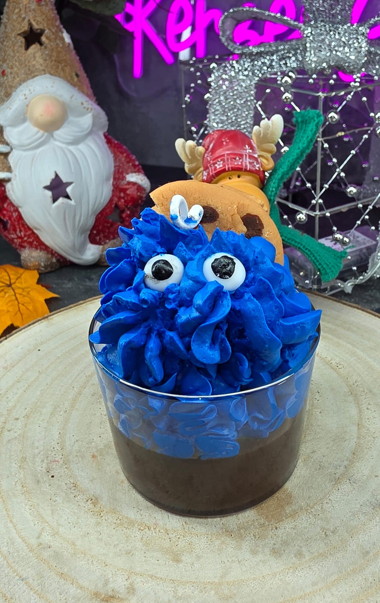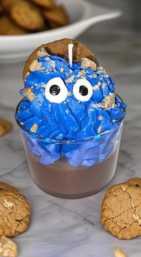 Meine handgemachte „Cookie Monster“-Kerze ist ein echter Hingucker – perfekt für alle Naschkatzen und Krümelmonster-Fans ! Mit leuchtend blauer Wachscreme, verspielten Augen und einem kleinen Keks-Detail bringt diese Kerze jede Menge Spaß und Farbe in dein Zuhause.